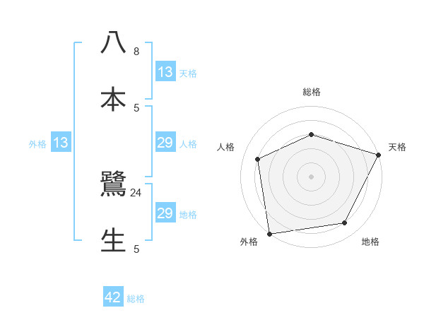 八本 鷺生さんの外格は13画の5点!