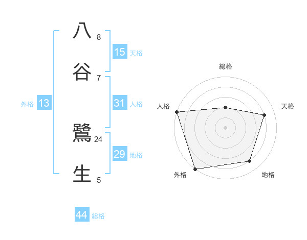 八谷 鷺生さんを姓名の画数から五運を鑑定