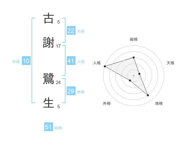 古謝 鷺生さんを姓名の画数から五運を鑑定