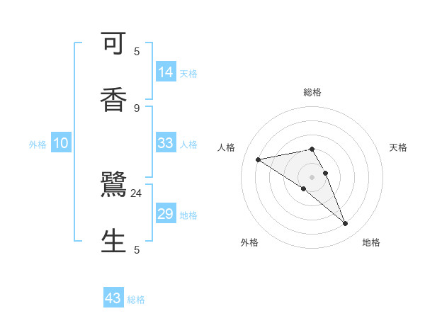 可香 鷺生さんの総格は43画の2点!