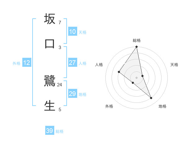 坂口 鷺生さんを姓名の画数から五運を鑑定