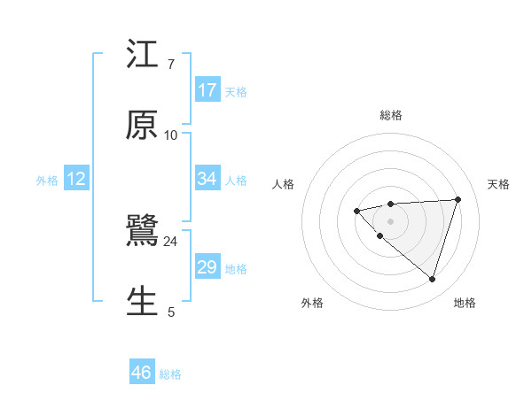 江原 鷺生さんの天格は17画の4点!