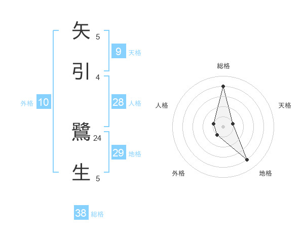 矢引 鷺生さんの総格は38画の4点!