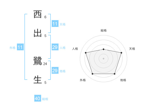西出 鷺生さんの外格は11画の4点!