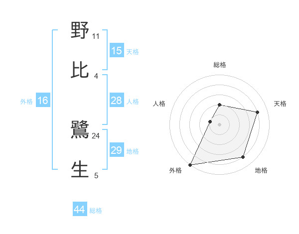 野比 鷺生さんの総格は44画の2点!