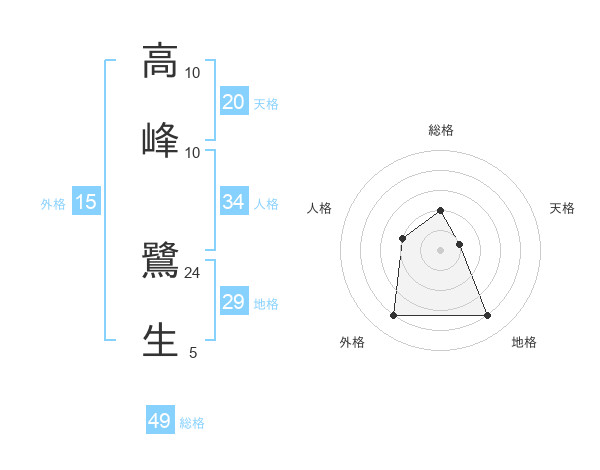 高峰 鷺生さんを姓名の画数から五運を鑑定