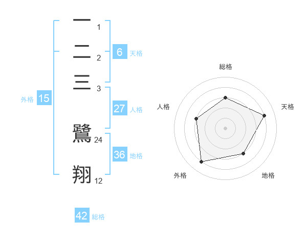 一二三 鷺翔さんの総格は42画の3点!