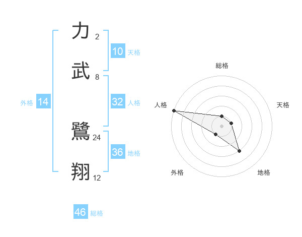 力武 鷺翔さんの総格は46画の1点!