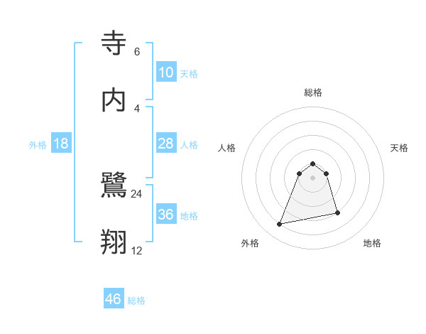 寺内 鷺翔さんを姓名の画数から五運を鑑定