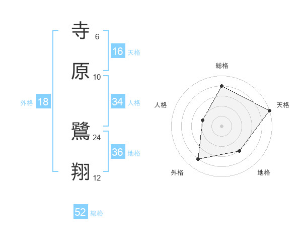 寺原 鷺翔さんを姓名の画数から五運を鑑定