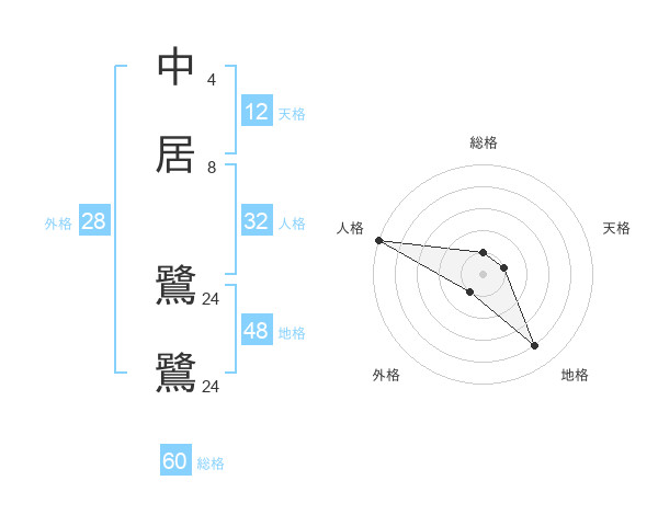 中居 鷺鷺さんの総格は60画の1点!