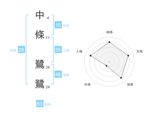 中條 鷺鷺さんを姓名の画数から五運を鑑定