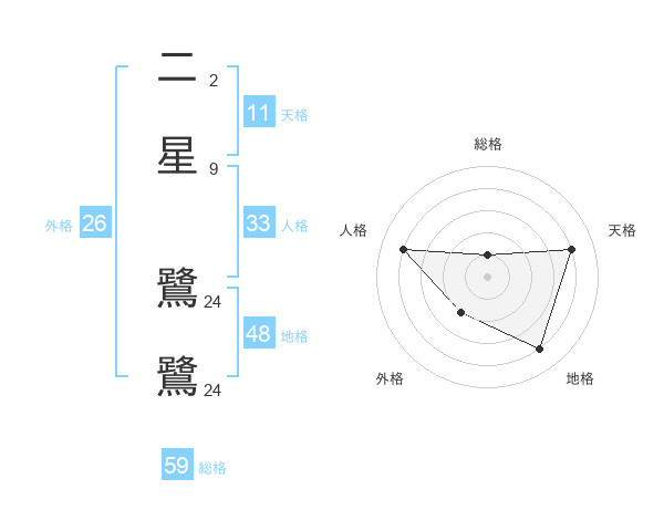 二星 鷺鷺さんの総格は59画の1点!