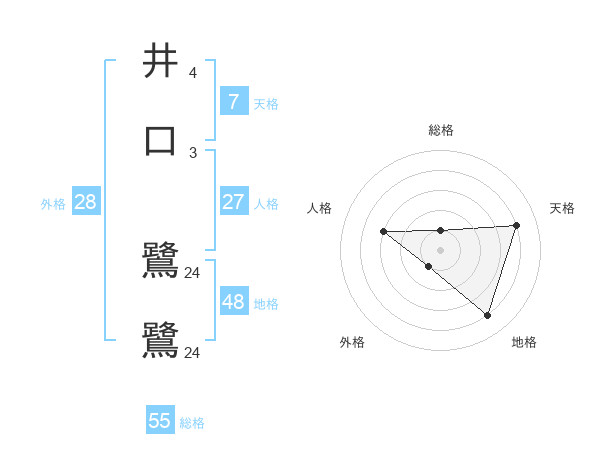 井口 鷺鷺さんを姓名の画数から五運を鑑定