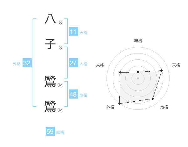 八子 鷺鷺さんを姓名の画数から五運を鑑定