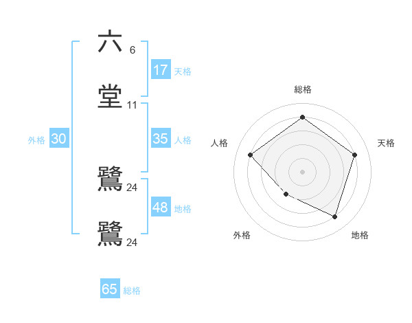 六堂 鷺鷺さんの総格は65画の4点!