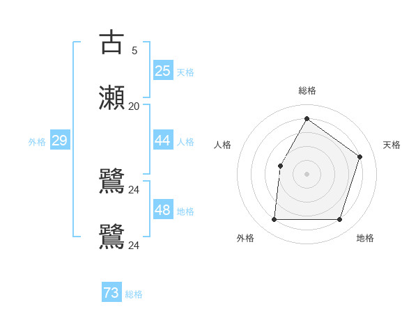 古瀬 鷺鷺さんの総格は73画の4点!