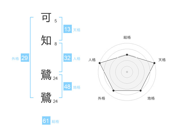 可知 鷺鷺さんの天格は13画の5点!