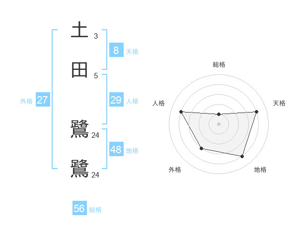 土田 鷺鷺さんを姓名の画数から五運を鑑定