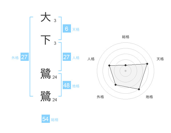 大下 鷺鷺さんを姓名の画数から五運を鑑定