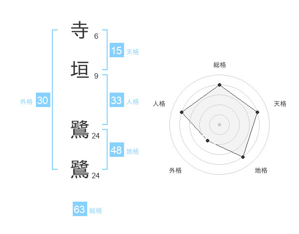 寺垣 鷺鷺さんの総格は63画の4点!
