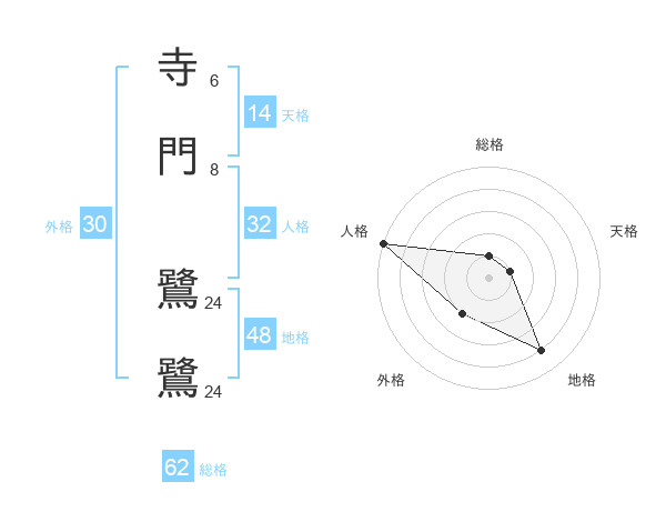 寺門 鷺鷺さんを姓名の画数から五運を鑑定