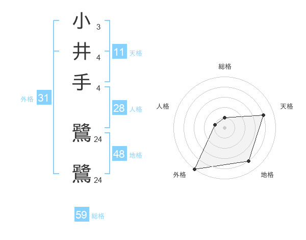 小井手 鷺鷺さんの外格は31画の5点!