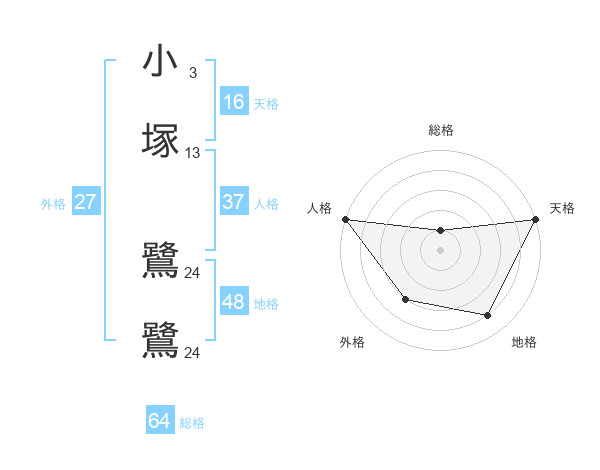 小塚 鷺鷺さんの総格は64画の1点!
