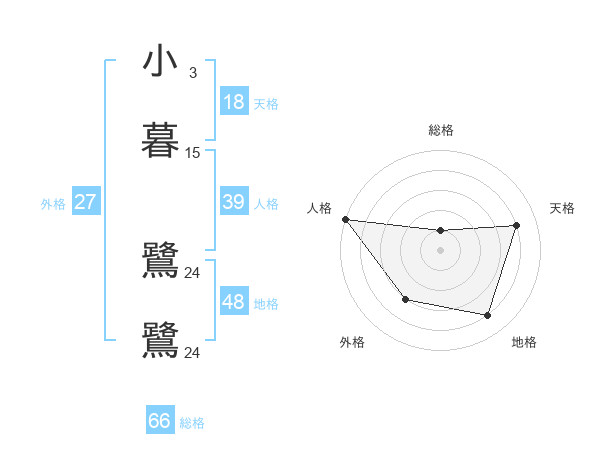 小暮 鷺鷺さんの総格は66画の1点!