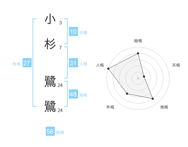 小杉 鷺鷺さんの総格は58画の4点!