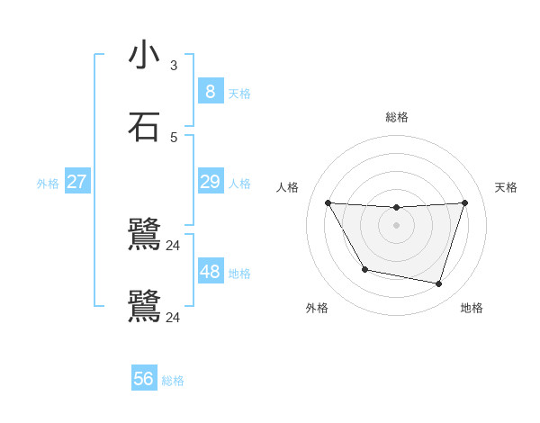 小石 鷺鷺さんの外格は27画の3点!