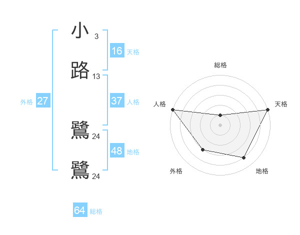 小路 鷺鷺さんの総格は64画の1点!