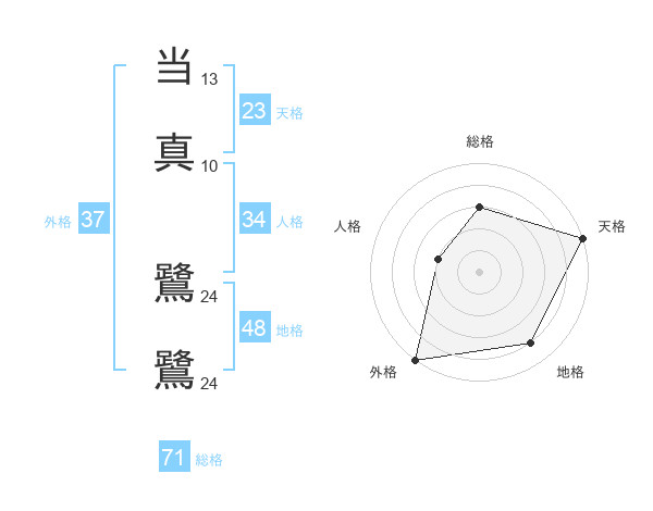 当真 鷺鷺さんを姓名の画数から五運を鑑定