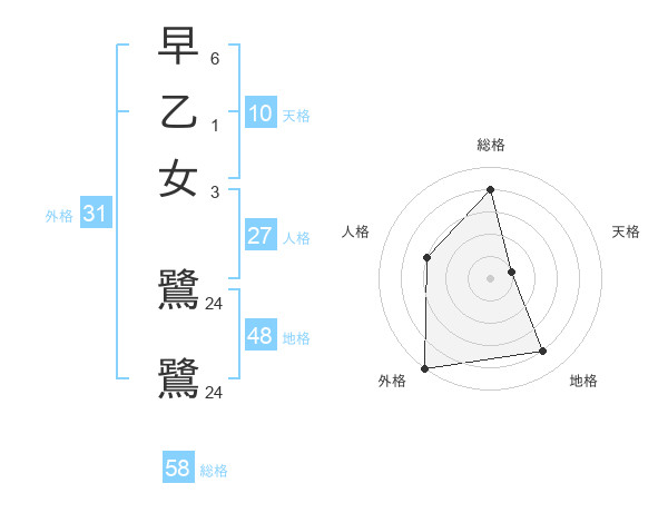 早乙女 鷺鷺さんを姓名の画数から五運を鑑定