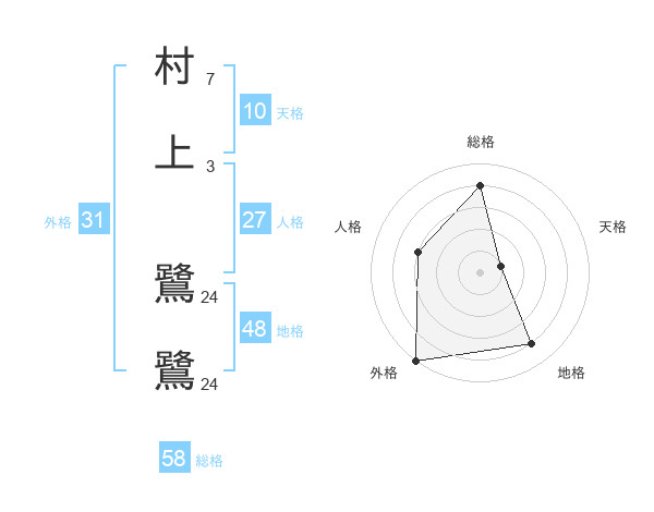 村上 鷺鷺さんを姓名の画数から五運を鑑定