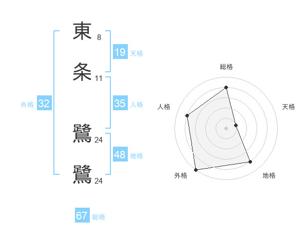 東条 鷺鷺さんを姓名の画数から五運を鑑定