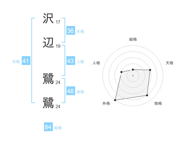 沢辺 鷺鷺さんの総格は84画の1点!