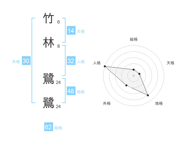 竹林 鷺鷺さんの総格は62画の1点!
