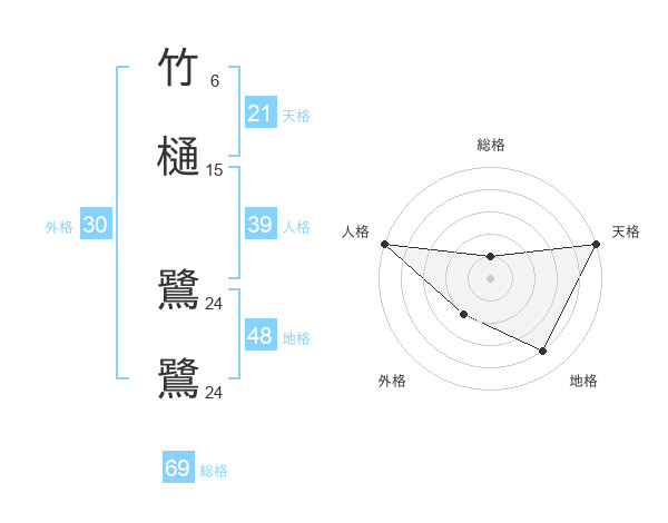 竹樋 鷺鷺さんを姓名の画数から五運を鑑定