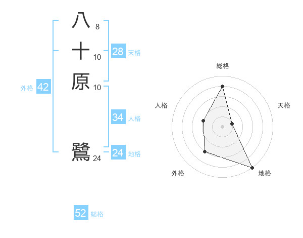 八十原 鷺さんを姓名の画数から五運を鑑定