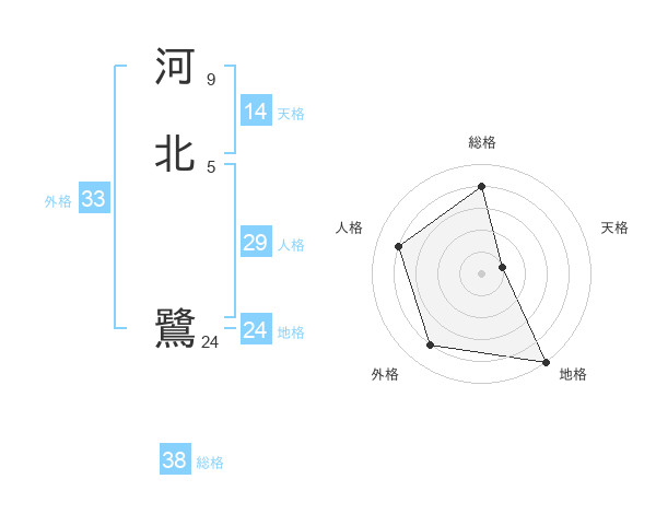 河北 鷺さんの総格は38画の4点!
