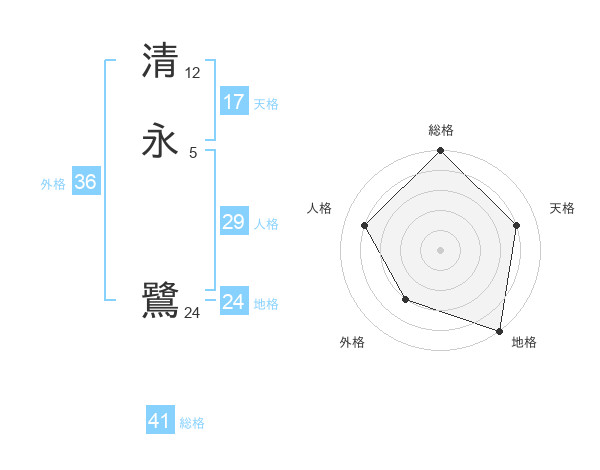 清永 鷺さんの総格は41画の5点!