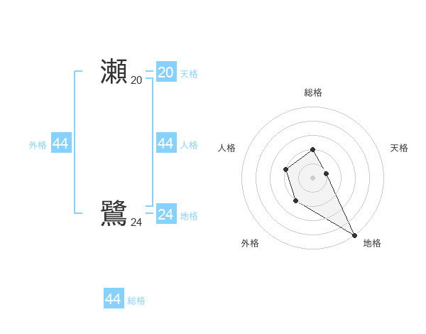 瀬 鷺さんを姓名の画数から五運を鑑定