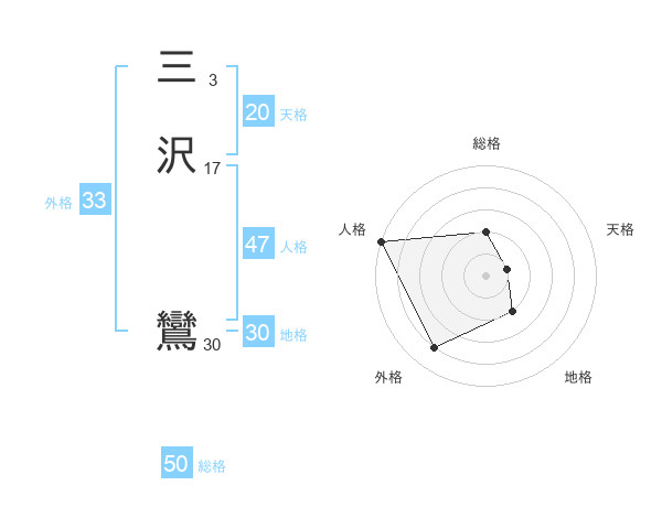三沢 鸞さんを姓名の画数から五運を鑑定