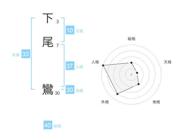 下尾 鸞さんを姓名の画数から五運を鑑定