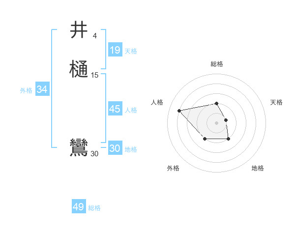 井樋 鸞さんの総格は49画の2点!