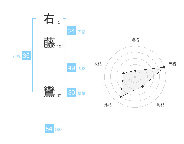 右藤 鸞さんの外格は35画の4点!