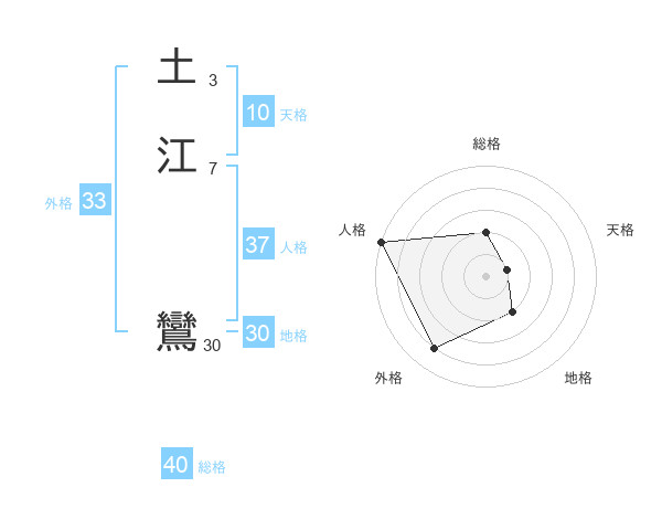 土江 鸞さんの総格は40画の2点!