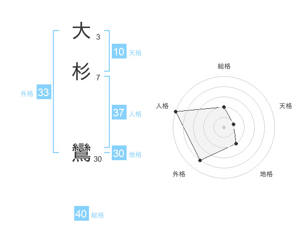 大杉 鸞さんの外格は33画の4点!