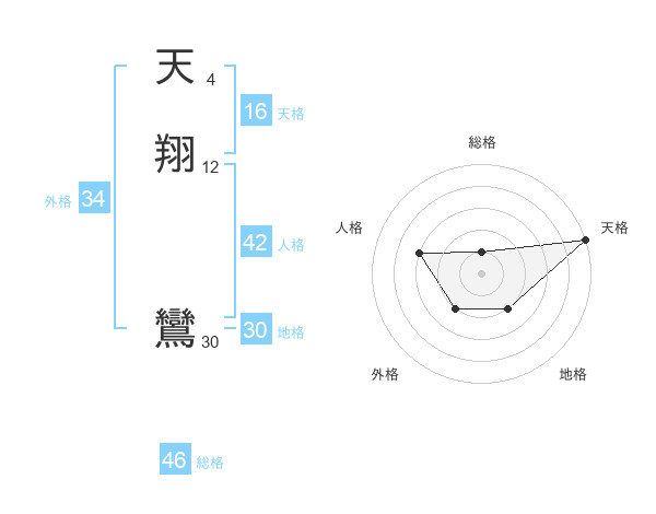 天翔 鸞さんの外格は34画の2点!